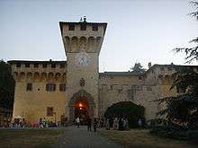 After Eleonora died in 1562, Cosimo's daughter Isabella replaced her as the first lady of Florence. She acted as a surrogate consort and also took over the supervision of Leonora's upbringing.[9] The red-headed Leonora, who possessed a natural charm, was popular in the Medici family. At the age of five, she was reported as being a comfort to Cosimo's second daughter Lucrezia, from whom she became inseparable, when Lucrezia was apart from her husband Alfonso d'Este.[10] Lucrezia died in 1561, leaving Isabella as Cosimo's only surviving daughter; the duke was, however, extremely fond of Leonora, and treated her as his own daughter. He was charmed by her vivacity and physical vigour—she delighted in horsemanship and arms—though he occasionally gently reminded her to behave with more decorum.[7] Owing to the close family and political ties between the House of Medici and the viceroyal family of Toledo, a marriage was arranged between Leonora and Cosimo's son Pietro, with whom she had grown up and who was of a similar age. The couple were betrothed in 1568 when Leonora was 15, with the approval of Philip II of Spain. Garcia Álvarez de Toledo provided her with a dowry of 40,000 gold ducats.[11] They were married at the Palazzo Vecchio in April 1571, and it was reported that Pietro had to be forced to consummate the union.[12] On 10 February 1573, Leonora gave birth to a son, Cosimo ("Cosimino"), who was the sole male Medici heir in this generation until his death three years later, in August 1576, one month after his mother's death.[13][14]