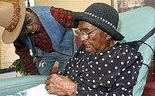 ![]() John Louis "Jack" Bolden, age 74, visits his grandmother, Elizabeth Bolden, age 114 | |
