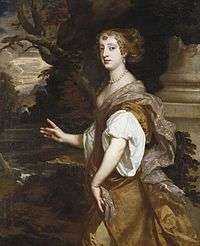 Elizabeth was an important patron of the artist Sir Peter Lely (1618–1680), who painted her several times. Her portraits were among the Windsor Beauties at Hampton Court and among the series of beautiful women portraits, ordered by Cosimo III de' Medici, Grand Duke of Tuscany.[3]