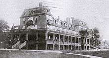 The first Elms Hotel on the site was a 200-room resort opened in July 1888. An annex with 75 additional rooms was added a year later, in 1889. It was destroyed by fire after less than ten years in operation, on May 9, 1898.[2]