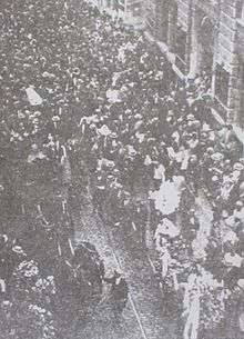 During the funeral, a demonstration was held in opposition to the Turkish government.[4] This created an anti-Semitic reaction in the Turkish press.[5] Nine protestors were immediately arrested under the charge of offending "Turkishness".[4] Nine Jews and also a Russian individual witness to murder were arrested. Four of them were sentenced for "denigration of Turkishness".[6]