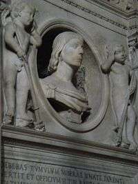 Emilio de' Cavalieri, or Emilio del Cavaliere,[1] (c. 1550 – 11 March 1602) was an Italian composer, producer, organist, diplomat, choreographer and dancer at the end of the Renaissance era. His work, along with that of other composers active in Rome, Florence and Venice, was critical in defining the beginning of the musical Baroque era. A member of the Roman School of composers, he was an influential early composer of monody, and wrote what is usually considered to be the first oratorio.