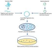 Before analyzing target genome structural aberration and copy number variation (CNV) with ESP, the target genome is usually amplified and conserved with artificial chromosome construction. The classic strategy to construct an artificial chromosome is bacterial artificial chromosome (BAC). Basically, the target chromosome is randomly digested and inserted into plasmids which are transformed and cloned in bacteria.[1] The size of fragments inserted is 150–350 kb.[2] Another commonly used artificial chromosome is fosmid. The difference between BAC and fosmids is the size of the DNA inserted. Fosmids can only hold 40 kb DNA fragments,[3] which allows a more accurate breakpoint determination.