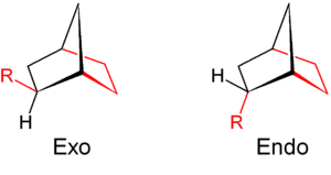 The terms endo and exo are used in a similar sense in discussions of the stereoselectivity in Diels–Alder reactions.