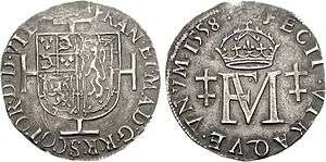 In the Kingdom of Scotland, during the reign of Mary, Queen of Scots, the testoon and half testoon were introduced to the Scottish coinage in 1553 and 1555 respectively. The 1553 is a Scottish rarity and Mary was presented with one (this piece was EF which sold for 61 gbp during the 1850s Thornburn).[2]