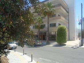 The Town Hall is situated in Erechtheiou Street, no.3, 2413 Engomi[3], just off Grivas Diyeni Avenue.