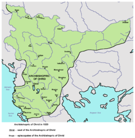 After the victorious byzantine conquests of 1018, by the order of emperor Basil II an autonomous Archbishopric of Ohrid was created in 1019, under the supreme ecclesiastical jurisdiction the Patriarchate of Constantinople. Imperial charters of 1019 and 1020 mention three bishoprics on the territory of present day Eparchy of Raška and Prizren with episcopal seats in the cities of Ras, Prizren and Lipljan. All three were designated as distinct dioceses of the autonomous Archbishopric of Ohrid. Until the beginning of 13th century, archbishops of Ochrid were regarded as metropolitans of all Bulgaria and Serbia.[8]