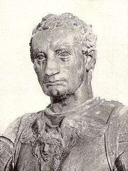 Erasmo of Narni (1370 – January 16, 1443), better known as "Gattamelata" (meaning "Speckled Cat") was an Italian condottiero of the Renaissance. He was born in Narni, and served a number of Italian city-states: he began with Braccio da Montone, served the Papal States and Florence, as well as the Republic of Venice in 1434 in the battles with the Visconti of Milan.