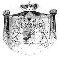 Esterházy (also spelled Eszterházy, Hungarian pronunciation: [ˈɛstɛrhaːzi]) is a Hungarian noble family with origins in the Middle Ages.[1][2][3][4] Since the 17th century, they were among the great landowner magnates of the Kingdom of Hungary during the time it was part of the Habsburg Empire and later Austria-Hungary. During the history of the Habsburg empire, the Esterházys were consistently loyal to the Habsburg rulers. They received the title of count in 1626 and the Forchtenstein line received the title of Fürst (Ruling Prince) from the Holy Roman Emperor in 1712.