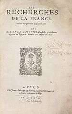 - Huppert, George, The Idea of Perfect History: Historical Erudition and Historical Philosophy in Renaissance France. (Urbana: University of Illinois Press, 1970) - See the chapter on Pasquier p28-71.
