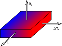 - ↑ v. Ettingshausen, A.; Nernst, W. (1886). "Ueber das Auftreten electromotorischer Kräfte in Metallplatten, welche von einem Wärmestrome durchflossen werden und sich im magnetischen Felde befinden". Annalen der Physik und Chemie. 265 (10): 343–347. Bibcode:1886AnP...265..343E. doi:10.1002/andp.18862651010. Retrieved 23 February 2012.