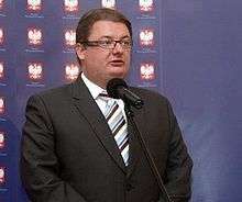 Group chairman Kamiński left Law and Justice (PiS) in November 2010, saying that the party had been taken over by the far-right. Kamiński and other Law and Justice MPs and MEPs formed a new Polish party, Poland Comes First, formed as a breakaway from Law and Justice following dissatisfaction with the direction and leadership of Jarosław Kaczyński. Kamiński initially remained of the group, but other Law and Justice MEPs argued he should step down.[53] On 15 December, rumours emerged that the eleven remaining PiS MEPs might leave the ECR and join the right-wing Europe of Freedom and Democracy (EFD) group instead.[54]