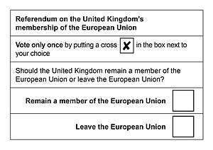 - ↑ "EU referendum results". Electoral Commission. Retrieved 9 July 2016.