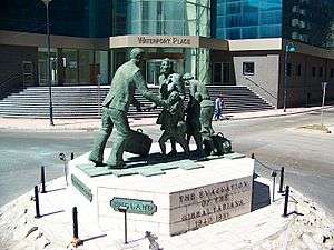 When the evacuees arrived at Gibraltar, the Governor, Sir Clive Liddell, would not allow them to land, fearing that once they were back on the Rock, it would be virtually impossible to evacuate them a second time.[4] Crowds gathered in John Mackintosh Square in the centre of Gibraltar as the news broke, speeches were made and two City Councillors accompanied by the Acting President of the Exchange and Commercial Library went to see Governor Liddell to ask that the evacuees be allowed to land.[5] After receiving instructions from London, a landing was allowed as long as the evacuees returned when other ships arrived to take them away from The Rock, and by 13 July the re-evacuation back to Gibraltar had been completed.[5]