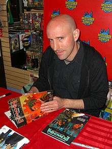 Writer Brian K. Vaughan signing copies of the book at Midtown Comics in Manhattan.