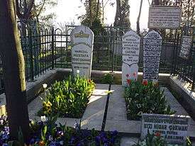 The Eyüp Cemetery (Turkish: Eyüp Mezarlığı), aka Eyüp Sultan Cemetery, is a historic burial ground located in the Eyüp district, on the European side of Istanbul, Turkey. It is administered by the General Directorate of Foundations.[1] One of the oldest and largest Muslim cemeteries in Istanbul, it hosts graves of Ottoman sultans and court members, grand viziers, high-ranked religious authorities, civil servants and military commanders as well as intellectuals, scientists, artists and poets.