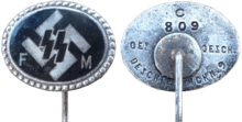 A Förderndes Mitglied der SS (SS-FM; SS Patron Members) was a member of a Nazi organisation for individuals who did not join the Allgemeine SS (General SS) for active duty, but instead contributed financially to the SS. The SS-FM was organised by the SS Wirtschafts-und Verwaltungshauptamt (SS Economic and Administrative Department), and started in 1926. Members of the SS-FM made monthly payments towards the work of the SS at their local SS headquarters. For people with low income, the grant was correspondingly low, a minimum contribution was not prescribed. Each member was issued with a lapel pin and a receipt book. From April 1934, members also received a monthly magazine, entitled FM-Zeitschrift, which was produced by the SS High Command.[1][2] By 1939, circulation of FM-Zeitschrift was approximately 365,000,[1] but very few copies of this magazine survive today.[2]