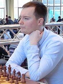 At the end of the game, feeling insulted, Tregubov refused to shake his hand.[15] Two days after the game, Tregubov and his team would complain to arbiters about his suspect strong play, and his frequent toilet breaks. On the second day, Bindrich had the black pieces against Sebastian Siebrecht and on move 10, he took a second toilet break. Siebrecht, having played such cheaters as Christoph Natsidis in the past, suspected that he was using an analysis program on his smartphone.[16] On Bindrich's return an arbiter asked to search him and that he give over his smartphone, which under tournament rules, the refereee is allowed to do.[17] Bindrich refused to hand it over, saying that there was private information on the phone, and he was forfeited the game.[18][19]