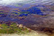 Altogether, the Delta covers 1,153 square miles (2,990 km2), with 841 sq mi (2,180 km2), or nearly 73 percent, devoted to agriculture. About 100 sq mi (260 km2) of the Delta area is urban and 117 sq mi (300 km2) are undeveloped land. The rivers, streams, sloughs and waterways of the Delta total about 95 sq mi (250 km2) of surface, although this fluctuates greatly with seasons and tides.[4] Geologically, it is not considered a true river delta, but rather an inverted river delta, as it formed inward (sediments accumulating progressively inland) rather than outward. The only other major river delta in the world located this far inland is the Pearl River Delta in China.[6]