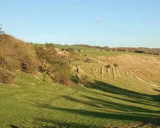 Farthing Common is an area of common land about 10 km northwest of Folkestone in East Kent. It is one of the highest points of the North Downs at 185 metres above sea level, and was the junction of the ancient trackway along the Downs from Folkestone, with the Roman road (now the B2068 Stone Street) between Lympne and Canterbury.