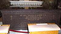 In 1987, Baker was named Servant of God.[8] His remains were moved from the Holy Cross Cemetery in 1999 and reinterred under the Our Lady of Lourdes altar in the Our Lady of Victory Basilica and National Shrine.[6]