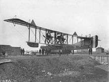 The aircraft was an unequal-span, three-bay biplane of wood-and-fabric construction, the hull being mounted below the lower wing. The engines, normally three Rolls-Royce Eagles, (but sometimes with a 260 hp Green as the centre, pusher engine) were mounted between the wings; two in tractor configuration and the central one in pusher. The two pilots were in an enclosed cockpit, the three gunners had open stations armed with machine guns.[5]
