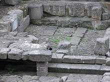 Her temple in the Campus Martius, in what is now Largo di Torre Argentina, was probably located in a grove as well according to an inscription found on the site.[22] It was established before 217 BCE. It may have been dedicated by Curtius Dentatus following his victory over the Sabines. His building program also included the Anio Vetus, a major new aqueduct, and a number of fountains near the temple.[23] Feronia's cults at Aquileia and Terracina were near springs that were used in her rites.[24] The Augustan poet Horace speaks of the water (lympha) of Feronia, in which "we bathe our face and hands."[25]