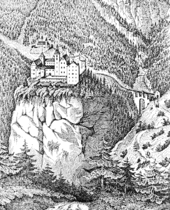 According to tradition, the site's first use was as a hermitage in about the middle of the 10th century by Blessed Rathold (or Rapoto) of Aibling, of the ancient noble family of the Rapotonen, who established his cell on the Georgenberg ("St. George's Mount"), a rocky outcrop rising some hundred metres above the Stallental valley near Stans.[1]