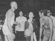 The Philippine Basketball Association was founded when nine teams left the now-defunct Manila Industrial and Commercial Athletic Association (MICAA), which was tightly controlled by the Basketball Association of the Philippines (BAP), the FIBA-recognized national association at the time.[5] With the BAP controlling the MICAA, the league was de jure amateur, as players were only paid allowances. This is much like what was done in other countries to circumvent the amateur requirement and to play in FIBA-sanctioned tournaments such as the Olympics. MICAA team owners are not pleased on how BAP, then led by Gonzalo "Lito" Puyat are taking away their players to join the national team without consulting them first.[6] The teams that bolted away from the MICAA are the Carrier Weathermakers, Crispa Redmanizers, Mariwasa-Noritake Porcelainmakers, Presto Ice Cream, Royal Tru-Orange, Seven-Up Uncolas, Tanduay Distillery, Toyota Comets and the U/Tex Weavers. Leopoldo Prieto, the coach for the Philippines at the 1956 Melbourne Olympics, was appointed as the first commissioner and Emerson Coseteng of Mariwasa-Noritake was chosen as the first president of the league's Board of Governors.[7] The first game of the league was held at the Araneta Coliseum on April 9, 1975, featuring Mariwasa-Noritake and Concepcion Carrier.