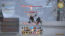 Players fight enemies using a combination of physical attacks, weapon skills, and magical attacks; these battles form the basis of party play in Final Fantasy XIV: A Realm Reborn. Most battle content in the game requires parties of a specific size, including four players for instanced dungeons and eight players for boss battles. The "Duty Finder" is an automated matching feature that sorts players into parties for selected instanced content across different servers.[7] The "Party Finder" is a server-specific bulletin board where players may recruit other players for any kind of content including dungeons, raid battles, FATE parties, and more. Members of a party fill traditional MMORPG roles like tank, healer, support, and damage dealer. Party play revolves around the concept of "enmity", which is an indication of how hostile an enemy is toward a particular player.[11] Enmity is generated by performing offensive actions and lost using certain abilities. Each enemy will focus its attacks toward the player with the most enmity and management of enmity is important for successfully completing tougher encounters.[12] The tank must draw the enemy's attention away from other party members who generally have weaker defense by generating large amounts of enmity. Teamwork and strategy are required to defeat the strongest enemies. "Limit Breaks" are special abilities that can only be performed if members of the party excel at their roles.[13]