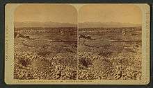 Gold was discovered in the area in late 1859, during the Pike's Peak Gold Rush. However the initial discovery, where California Gulch empties into the Arkansas River, was not rich enough to cause excitement. On April 26, 1860, Abe Lee made a rich discovery of placer gold in California Gulch, about a mile east of Leadville, and Oro City was founded at the new diggings.[3][4] By July 1860 the gold rush was on; the town and surrounding area grew to a population of 10,000 and an estimated $2 million in gold was taken out of California Gulch and nearby Iowa Gulch by the end of the first summer. But within a few years the richest part of the placers had been exhausted and the population of Oro City dwindled to only several hundred. Many claims were consolidated, and worked by ground sluicing. A ditch was dug in 1877 to provide water for hydraulic mining, but the hydraulic mining was reported to be unsuccessful.[5]
