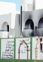 Dissent was illegal under Law 75 of 1973, and in 1974, Gaddafi asserted that anyone guilty of founding a political party would be executed.[89] With the establishment of the Jamahiriya ("state of the masses") system in 1977, he established the Revolutionary Committees as conduits for raising political consciousness, with the aim of direct political participation by all Libyans rather than a traditional party-based representative system.[93] In 1979, some of the Revolutionary Committees had eventually evolved into self-appointed, sometimes zealous, enforcers of revolutionary orthodoxy.[93] During the early 1980s, the Revolutionary Committees had considerable power and became a growing source of tension within the Jamihiriya,[94] to the extent that Gaddafi sometimes criticized their effectiveness and excessive repression,[93][94] until the power of the Revolutionary Committees were eventually restricted in the late 1980s.[94]