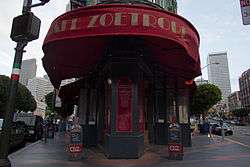 On the ground floor is the Cafe Zoetrope (previously Cafe Niebaum-Coppola), which has occupied part of the building since 1999. The cafe is a bistro and wine shop satellite of the Inglenook Estate Winery in the Napa Valley.[9]