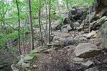 Cadets refer to it as "Flirtie Walk", or just "Flirtie". The cadet knowledge manual, known as Bugle Notes, refers to Flirtation Walk as a "scenic walk where only cadets and their escorts may go."[1] The trail was first used during the Revolutionary War to access the Great Chain that deterred British ships navigating the turn in the river. As it originally had a military application, this path was off limits to cadets until the 1840s. After the military garrison's purpose at West Point became obsolete, the trail was opened and encouraged to be used by cadets. As the academy grew in size in the mid-19th century, more visitors began to frequent the cadets. Given the limited transportation opportunities of the day and the lack of places for the young men of the academy to take their lady guests, the walk became a popular place to go. The administration of the academy allowed cadets the rare opportunity to have some privacy with their guests.[2] This policy is still traditionally held and signs are posted to keep visitors to the academy away from the trail. The signs read "Visitors must be accompanied by a cadet".