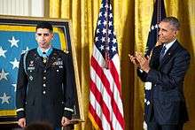 - ↑ Lamothe, Dan (2015-11-10). "After confronting a suicide bomber, this soldier must swap running for the Medal of Honor". The Washington Post. ISSN 0190-8286. Retrieved 2015-11-13.