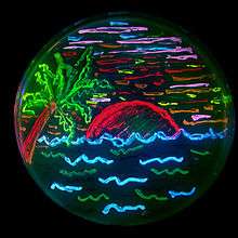 - ↑ Phillips GJ (Oct 2001). "Green fluorescent protein--a bright idea for the study of bacterial protein localization". FEMS Microbiology Letters. 204 (1): 9–18. doi:10.1016/S0378-1097(01)00358-5. PMID 11682170.