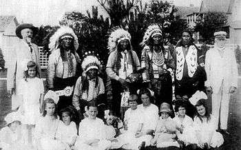 - ↑ Chief Flying Hawk replaces Chief Iron Tail who was stricken and died a fortnight ago. He was chosen by all of the braves yesterday. Boston Globe, June 12, 1916.