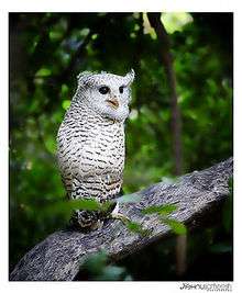 The spot-bellied eagle-owl (Bubo nipalensis), also known as the forest eagle-owl is a large bird of prey with a formidable appearance. It is a forest-inhabiting species found in the Indian Subcontinent and Southeast Asia. This species is considered part of a superspecies with the barred eagle-owl (Bubo sumatranus), which looks quite similar but is allopatric in distribution, replacing the larger spot-bellied species in the southern end of the Malay Peninsula and the larger island in Southeast Asia extending down to Borneo.