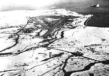 Along with new airfields on the mainland and Southwest Alaska, new air bases were planned for the air defense of the Aleutians to Dutch Harbor. Construction of the new bases on Umnak and Cold Bay began in January 1942 in secret, with construction reportedly disguised as a cannery. Originally, the equipment was supposed to construct McGrath Army Airbase, but the ground had frozen by the time that the equipment arrived.[4] The first United States Army engineers landed at what would become Fort Glenn Army Air Base on 17 January and construction began by the end of the month. A Naval airfield, Otter Point Naval Air Facility was adjacent to the Army Airbase. The 807th Engineering Battalion (Aviation) was brought in from Yukat to perform the construction along with a detachment of the Navy Seabee 8th Construction Battalion.[3][5]