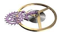 In February 2007, Frederique Constant began production of the Silicon escapement wheel (first introduced to the industry by Patek Philippe in 2005).[11] The company introduced the Heart Beat Calibre FC 935 Silicium in October 2007. It implements new high tech materials to create better, more precise and more reliable mechanical watches.[12] Deep reactive-ion etching is used to shape silicon wafers into escapement wheels, pallets, and plateaus. Silicon is lighter, harder and stronger than metal. Etched into tiny skeletal structures that would be impossible to form with metal, it becomes the featherweight heart of a mechanism that can run at a far higher accuracy. The silicon parts are virtually frictionless, so need no lubrication, and are immune to most external forces. And when bonded with a carbon coating, silicon's only real drawback, brittleness, can also be overcome.[13][14]