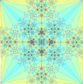 A fractal is a mathematical set that exhibits a repeating pattern that displays at every scale.[1] It is also known as expanding symmetry or evolving symmetry. If the replication is exactly the same at every scale, it is called a self-similar pattern. An example of this is the Menger Sponge.[2] Fractals can also be nearly the same at different levels. This latter pattern is illustrated in small magnifications of the Mandelbrot set.[3][4][5][6] Fractals also include the idea of a detailed pattern that repeats itself.[3]:166; 18[4][7]