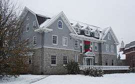 Fraternity chapter housing initially existed in two forms: lodges that served as meeting rooms and houses that had boarding rooms.[2] The lodges came first and were largely replaced by houses with living accommodations. Lodges were often no more than rented rooms above stores or taverns. The idea of substantial fraternity housing caught on quickly but was accomplished with much greater ease in the North as southern college students had far less available money for construction.[3] The first fraternity house in the South was likely one rented by members of Beta Theta Pi at Hampden–Sydney College from at least 1856. Alpha Tau Omega was then the first fraternity to own a house in the South when, in 1880, its chapter at The University of the South acquired one.[4]
