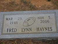 Freddie Lynn Haynes, known as Fred Haynes (March 29, 1946—November 5, 2006), was an American football player for the Louisiana State University Tigers from 1966 to 1968, having climaxed his three-season career by successfully quarterbacking both the Sugar Bowl in New Orleans and the Peach Bowl in Atlanta, in calendar year 1968. Because of his stature and weight, he did not play professionally after college but entered business in Baton Rouge, Louisiana.