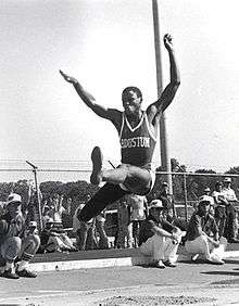 Though his focus was on the long jump, he was now starting to emerge as a sprint talent. Comparisons were beginning to be made with Jesse Owens, who dominated sprint and long jump events in the 1930s. Lewis qualified for the American team for the 1980 Olympics in the long jump and as a member of the 4 × 100 m relay team.[2] The Olympic boycott meant that Lewis did not compete in Moscow but instead at the Liberty Bell Classic in July 1980, an alternate meet for boycotting nations. He jumped 7.77 m (25 ft 5 3⁄4 in) there for a Bronze medal, and the American 4 × 100 m relay team won Gold with a time of 38.61 s.[9] At year's end, Lewis was ranked 6th in the world in the long jump and 7th in the 100 m.[8][10]