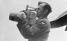 On 1 August 1919 Laws was granted a permanent commission in the RAF with the rank of major (squadron leader),[12] resigning his army commission the same day.[13] He served in the Directorate of Research at the Air Ministry from 1919 to 1923,[1] where he led the development of the F8 and F24 cameras, which became standard RAF equipment throughout the next war.[14] He was then appointed commander of the RAF School of Photography at Farnborough.[1] On 1 January 1927 he was promoted to wing commander.[15] Disappointed with the peacetime eclipse of his speciality, Laws was placed on the retired list at his own request on 1 September 1933.[16]