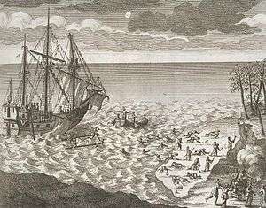 The Pélican was a French warship from the late 17th century. Built in Bayonne, France, the original Pélican was launched in 1693. A 500-ton ship fitted with 50 guns and commanded by Captain Pierre Le Moyne d'Iberville, she ran aground on the shores of Hudson Bay a few days after an heroic battle in 1697, badly damaged by the encounter and by a fierce storm. In five short months the ship's place in history had been assured, as the victor in the greatest naval battle in the history of New France.