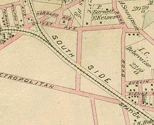 Its main streets, Fresh Pond Road, Metropolitan Avenue, Eliot Avenue and 61st Street, meet at the community's commercial center. Fresh Pond is served by the Fresh Pond Road and Metropolitan Avenue stations of the BMT Myrtle Avenue Line (M train) of the New York City Subway. It is also the home of the Fresh Pond Depot for MTA Bus and New York City Bus. A former Long Island Rail Road freight station of the Montauk Branch and the Fresh Pond Yard lie east of the corner of Metropolitan Avenue and Fresh Pond Road. The freight only Bushwick Branch of the LIRR branches off below (west of) the Fresh Pond yard before crossing Flushing Avenue. Freight cars interchange here with the New York Connecting Railroad including those from Bay Ridge and the New York Cross Harbor Railroad.[2][3]