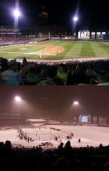 Frozen Frontier was an outdoor hockey event in December, 2013. A sheet of ice was set up on the field and the Rochester Americans played the Lake Erie Monsters in an AHL game. There were also collegiate and high school games.[12]