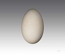 The breeding colonies may contain hundreds of birds and are on cliffs in ice-free areas with the birds arriving in October. The courtship display consists of a pair sitting alongside each other while calling, waving their heads and nibbling and preening each other. The nest is a shallow scrape lined with stone chips. It is built in a spot sheltered from the wind on a ledge or scree slope or in a crevice. A single, white egg is laid during late November or early December. It measures 76 by 51 mm (2.99 by 2.01 in) and weighs about 103 g (3.6 oz).[5] It is incubated for about 45 days with both parents taking turns in stints of 3–9 days. The down feathers of the young birds are initially white apart from a blue-grey wash on the mantle. The second set of down feathers is grey on the upperparts and flanks while the rest of the underparts and the forehead remain white.[5] The young fledge after around 52 days. Poor weather can lead to high mortality rates among eggs and chicks and they are also preyed on by skuas and sheathbills.[10] Breeding success increases as the parents mature, improving from 48% at age 6–8 to 87% at age 18–20.[4]