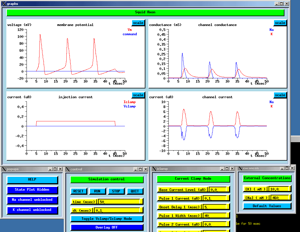 An individual can input commands through one of three ways: script files, graphical user interface, or the GENESIS command shell. These commands are then processed by the script language interpreter. "The Script Language Interpreter processes commands entered through the keyboard, script files, or the graphical user interface, and passes them to the GENESIS simulation engine. The simulation engine also loads compiled object libraries, reads and writes data files, and interacts with the graphical user interface".[7] Below is a graphical representation of the user input process and a sample GENESIS output.